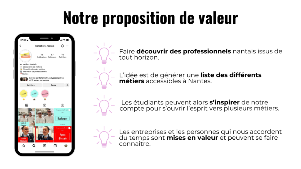 Suite à notre étude du marché, nous avons alors formulé notre proposition de valeur.