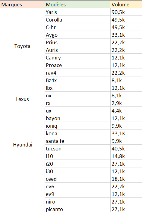 Pour cela, j’ai consulté les modèles disponibles, en occasion sur le site du groupe, pour chaque marque. J’ai par la suite regardé sur Semrush le volume du modèle par marque puis j’ai répété l’opération pour chaque modèle.